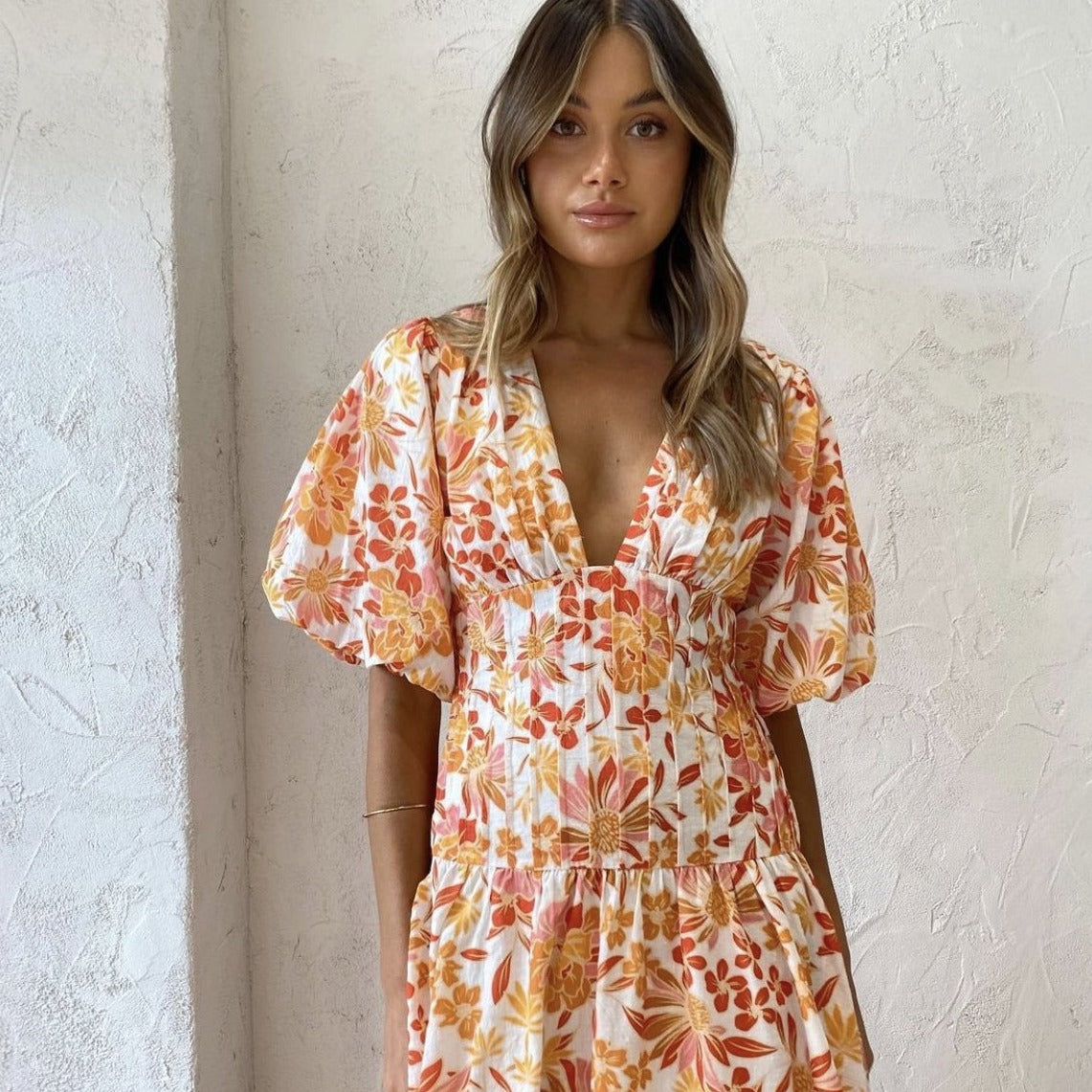 By Nicola - Fiesta Stitch Waist Mini Dress in Holiday Floret