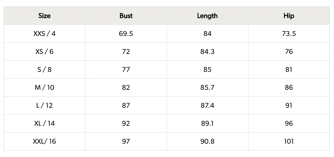Dress has a a back entry and a front clasp opening, sizing runs through the body of the dress. Larger busts will fit this. Smaller bust and waist may need to go down a size.