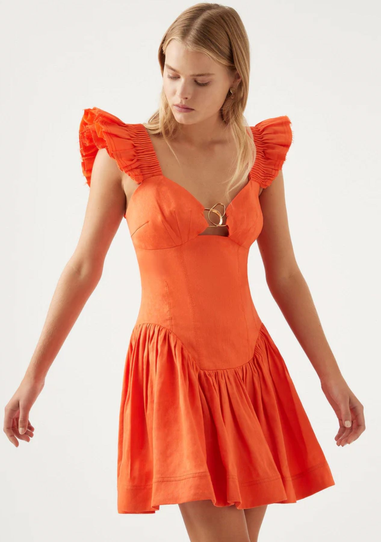 Aje - Simone Frill Sleeve Mini Dress Orange