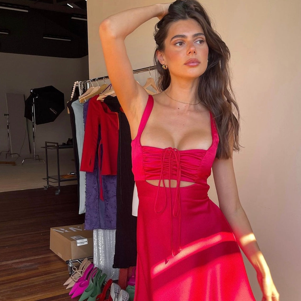 Dress comes with an adjustable open tie up back which allows room for a multiple bust and chest sizes to fit.
