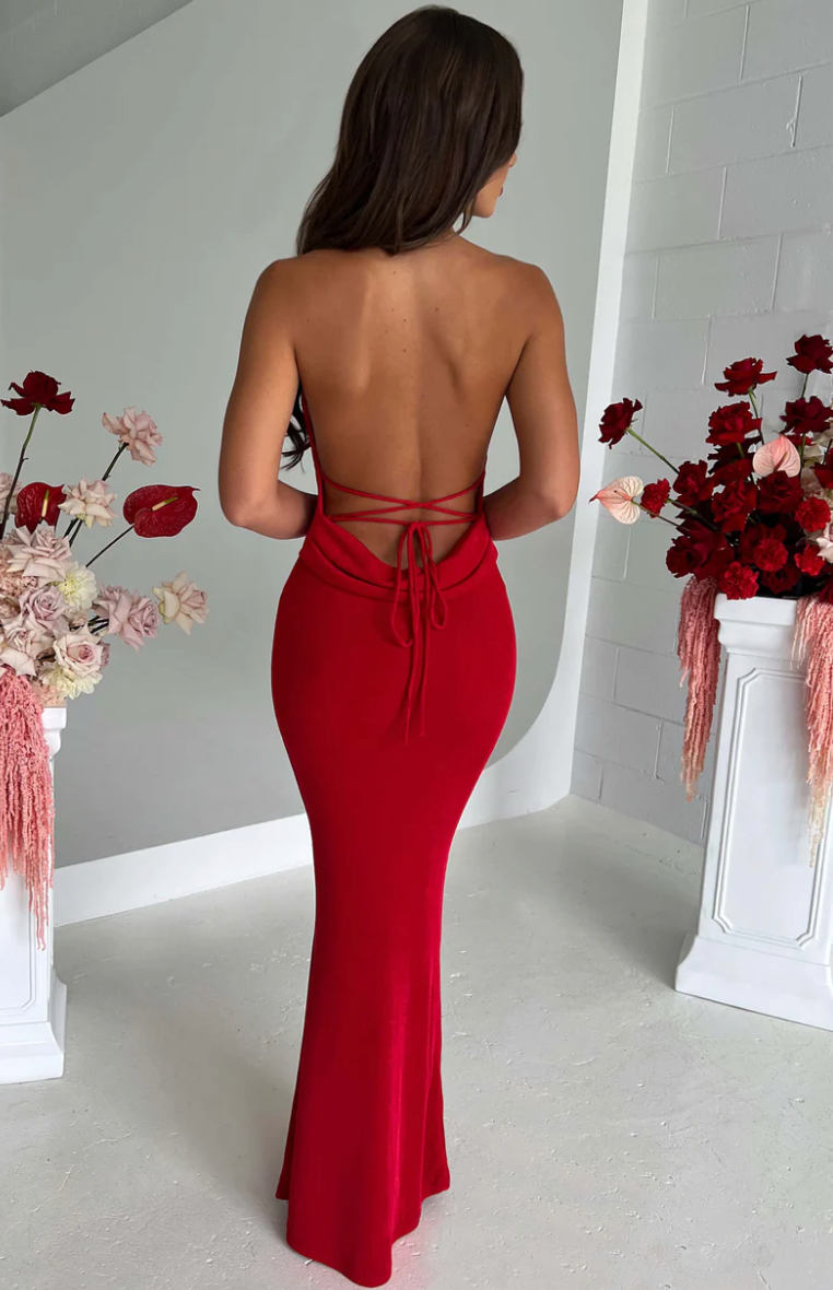 Dress is a slip on entry, all back and halter ties are adjustable and can be tied to your desired fit and style.