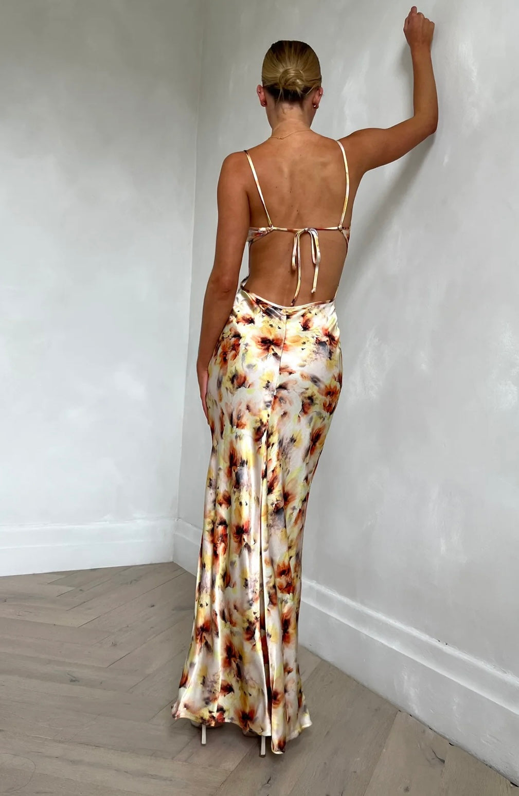 This dress has an adjustable tie back to adjust the bust to your preferred sizing.This dress will fit sizes stated above comfortably, smaller the size the lower the back of the dress will sit.
