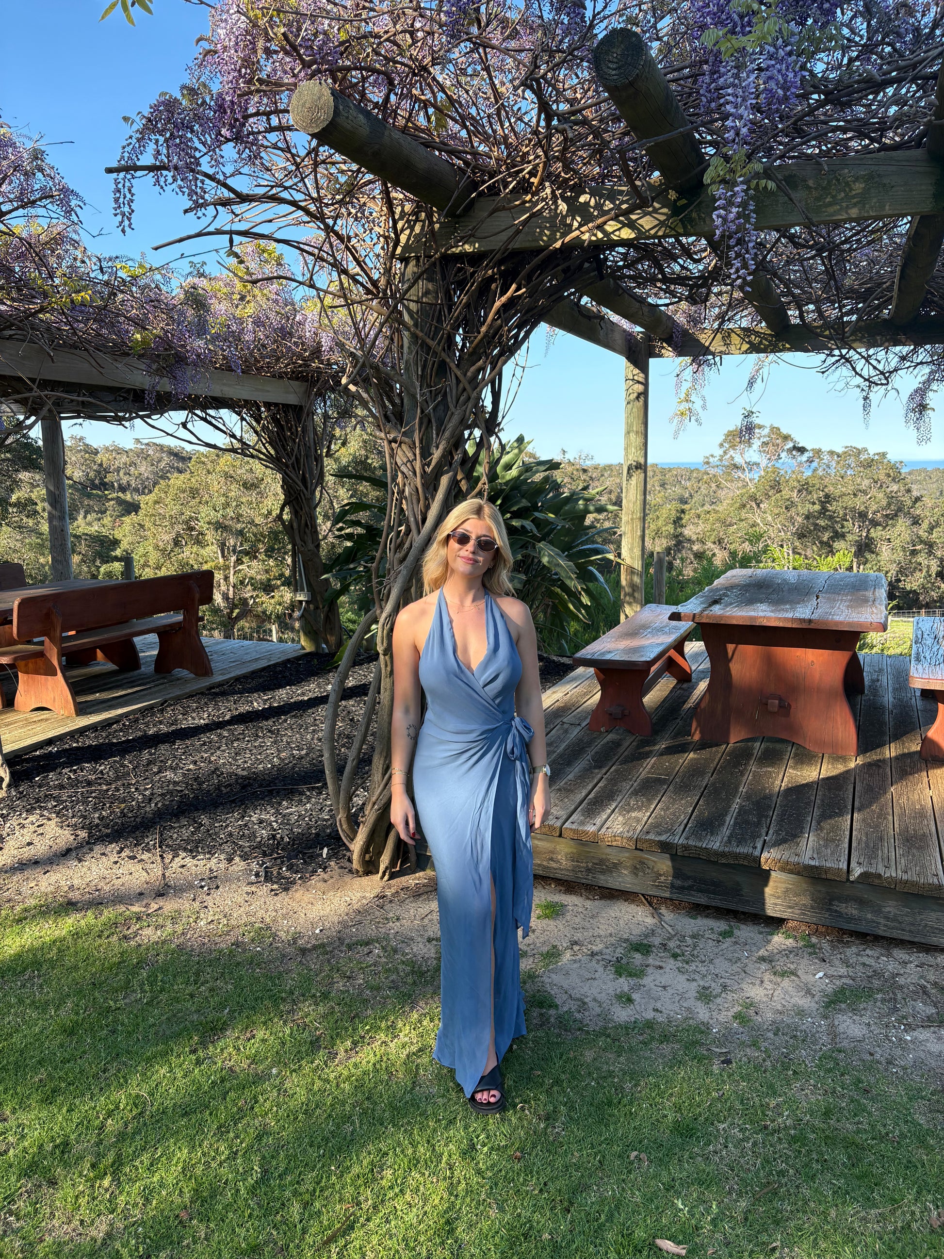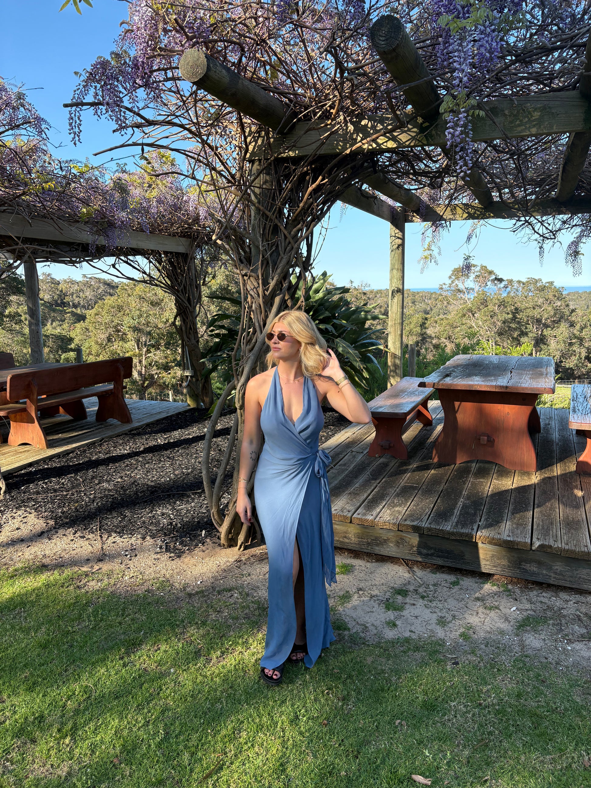 Bec and Bridge - Sovena Wrap Dress in Steel Blue