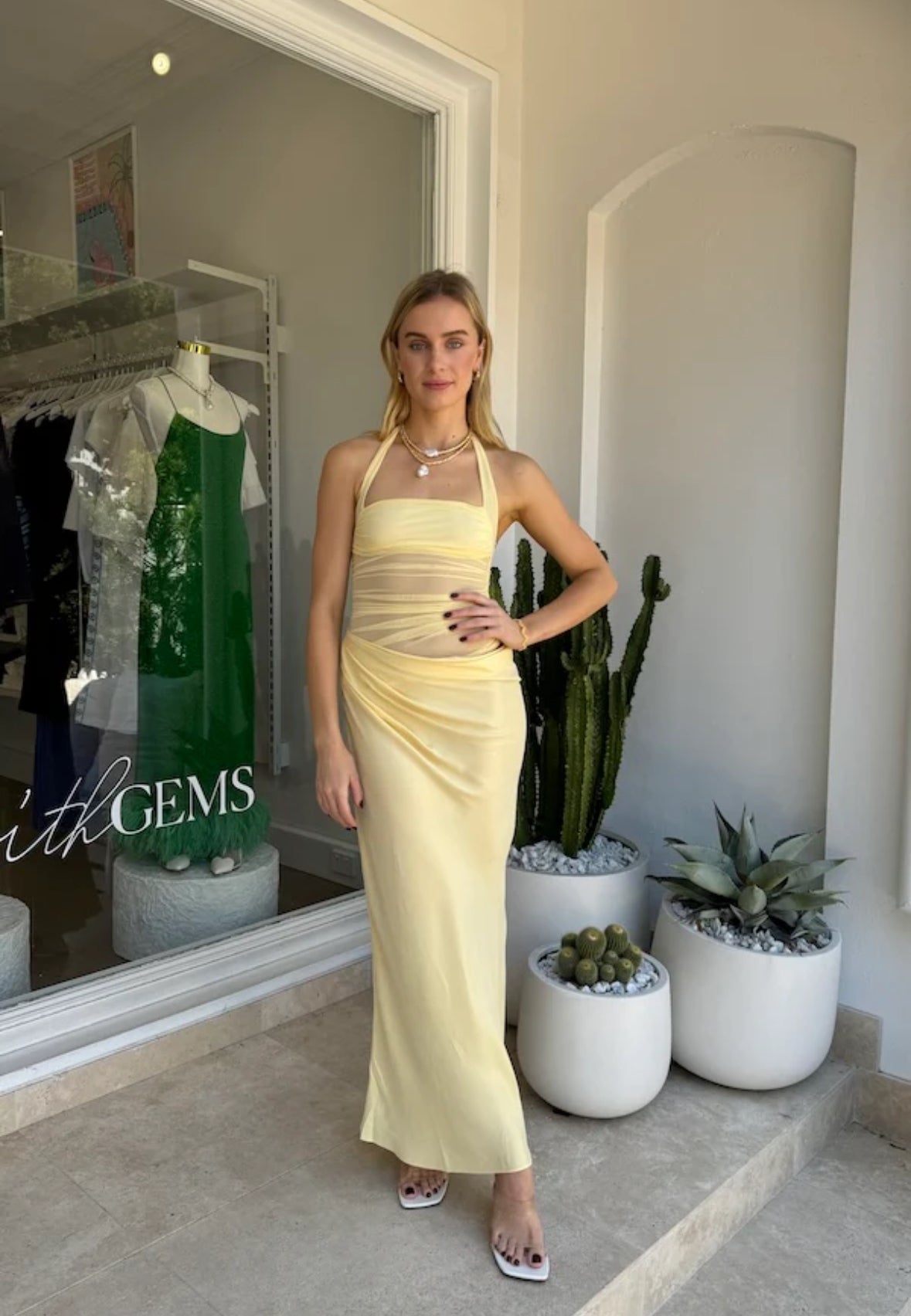 The dress has a side zip entry - this may feel unusual on the body as the weight of the skirt is pulling the zip and the top down. We recommend trying double sided fashion tape along the top part of the top to help keep the top stable.