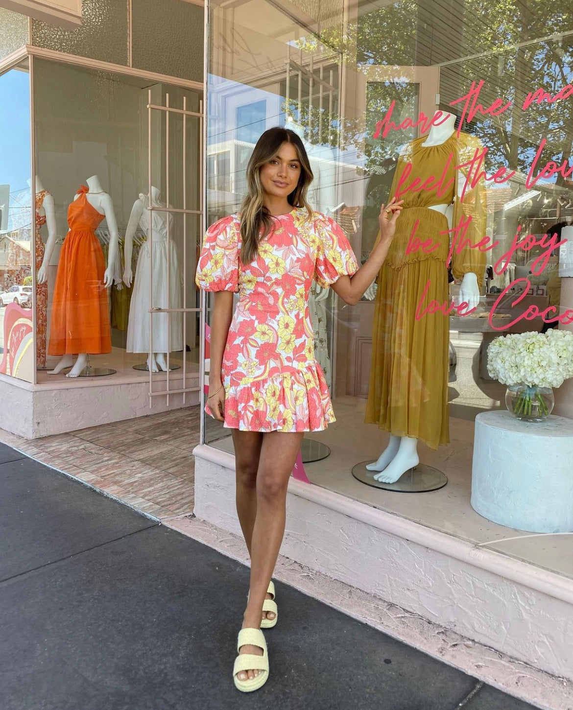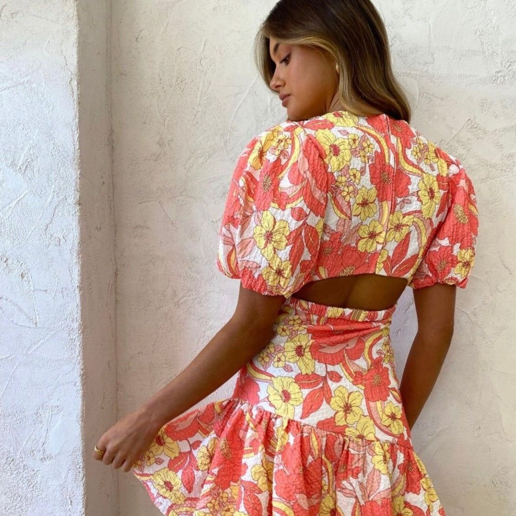 By Nicola - Calypso Puff Sleeve Mini Dress in Sunrise Blooms