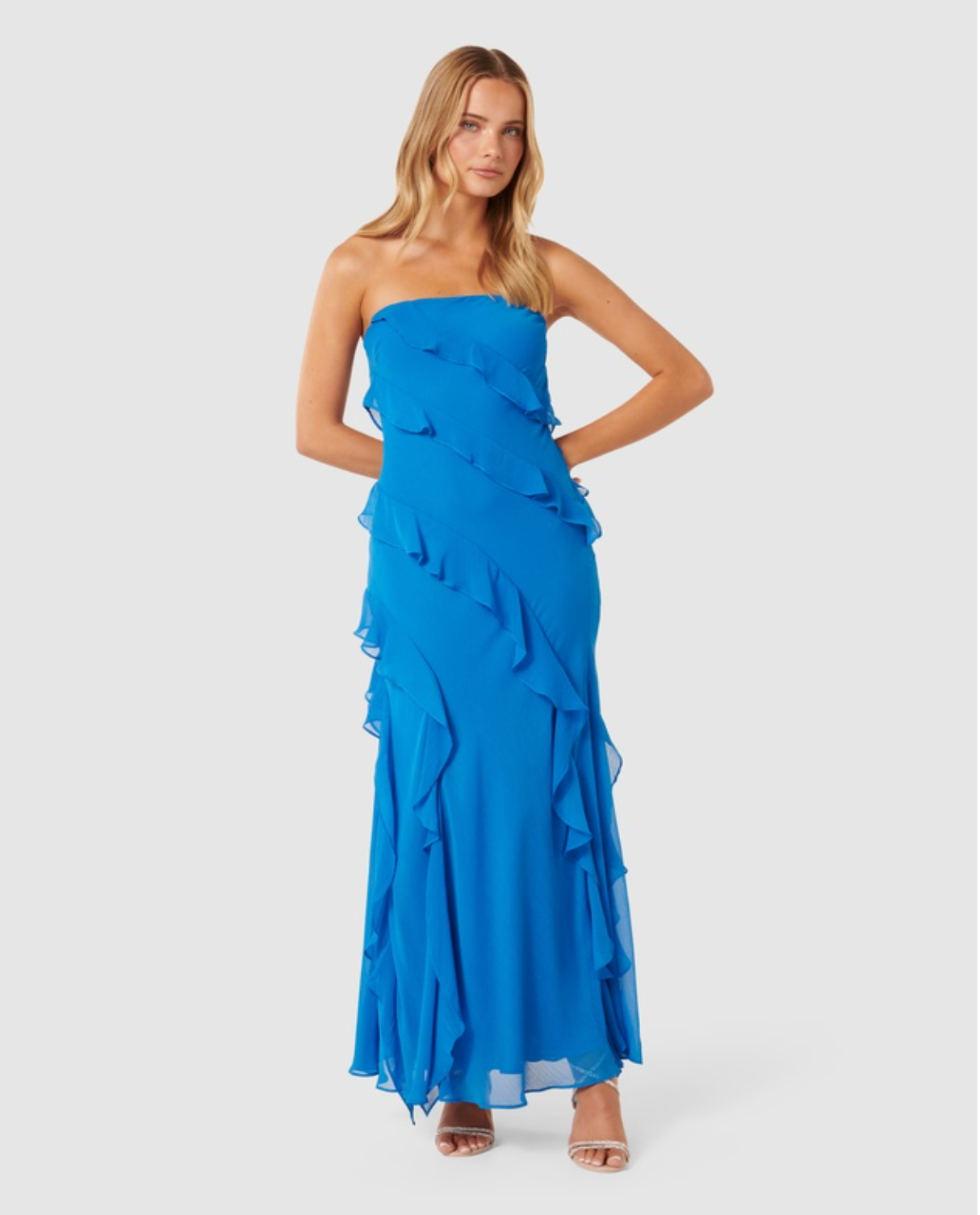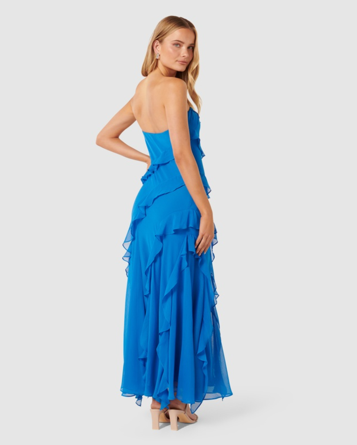 Forever New - Stella Strapless Ruffle Dress in Blue