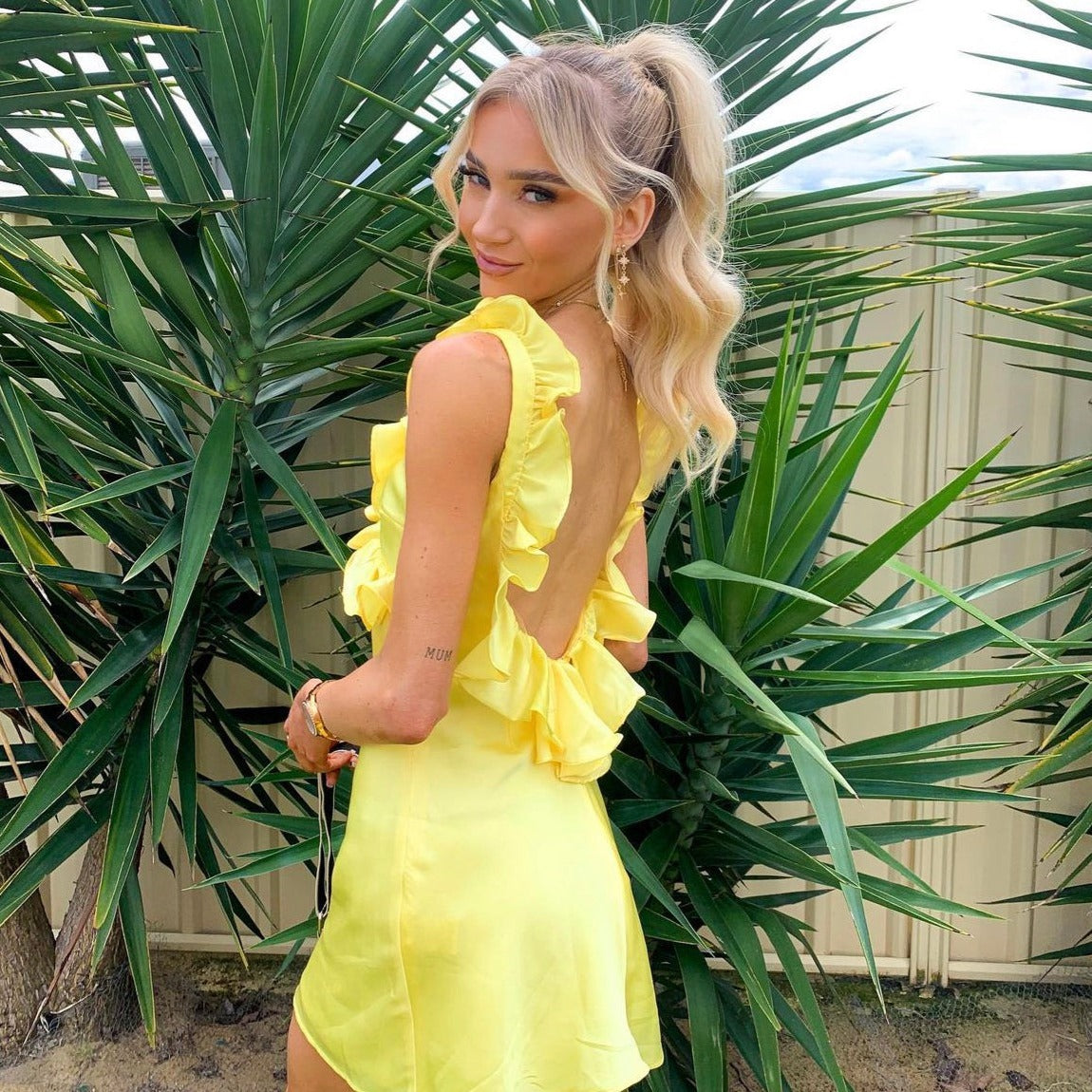 House Of CB - Tink Buttercup Satin Ruffle Mini Dress