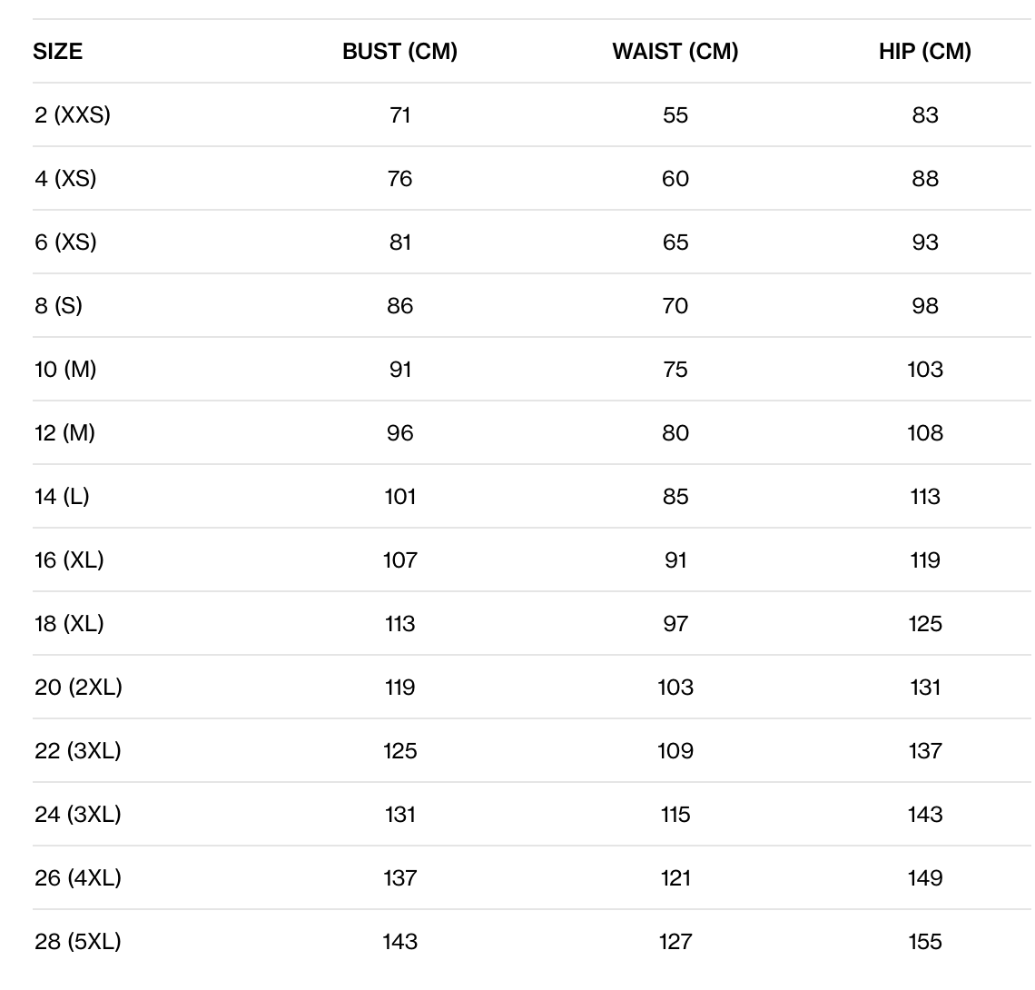 Slightly looser fit on a size 6 and tighter body fit on a size 10.