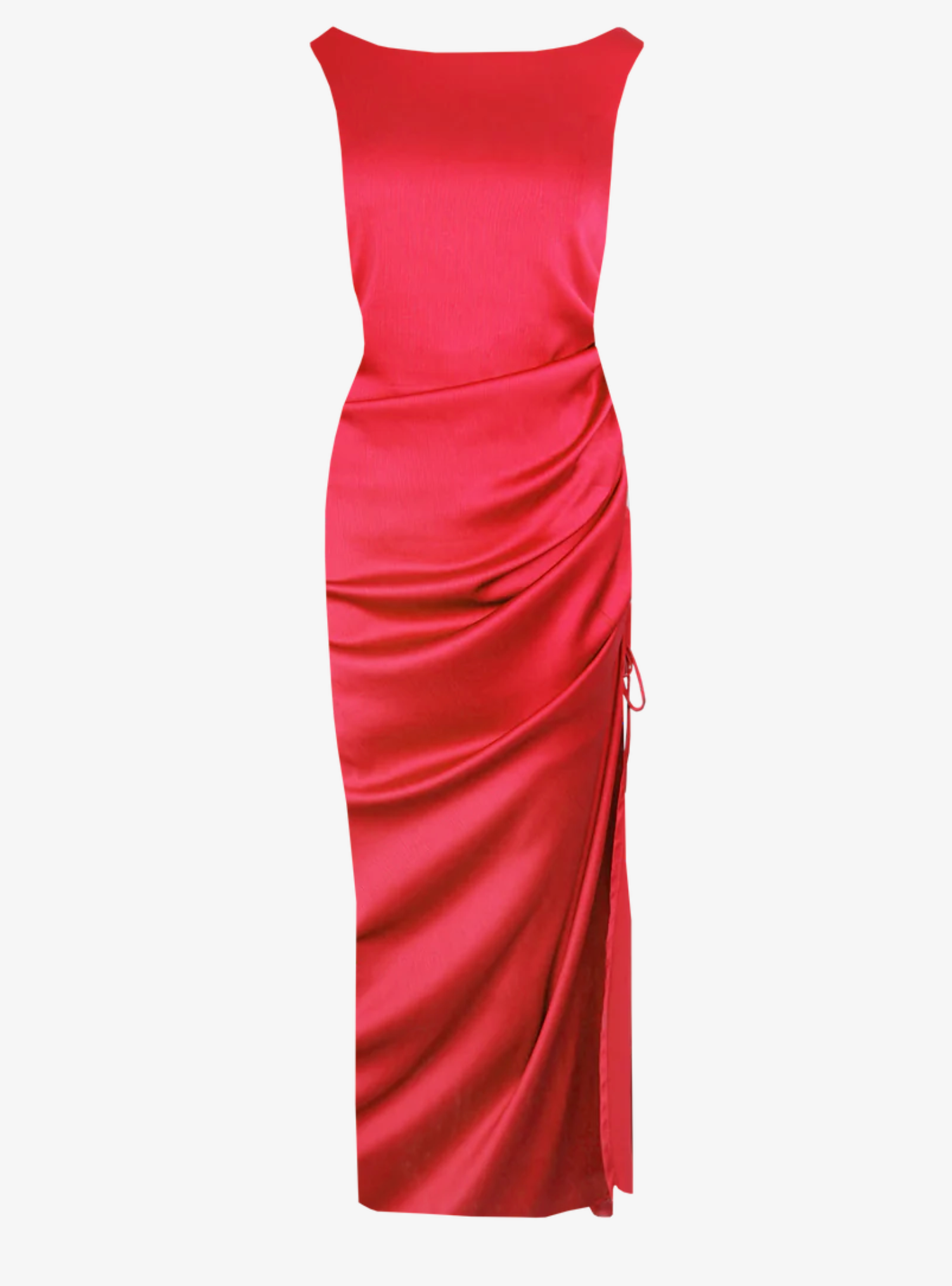 Ruby - Ecrolini Midi Dress in Lippy Red