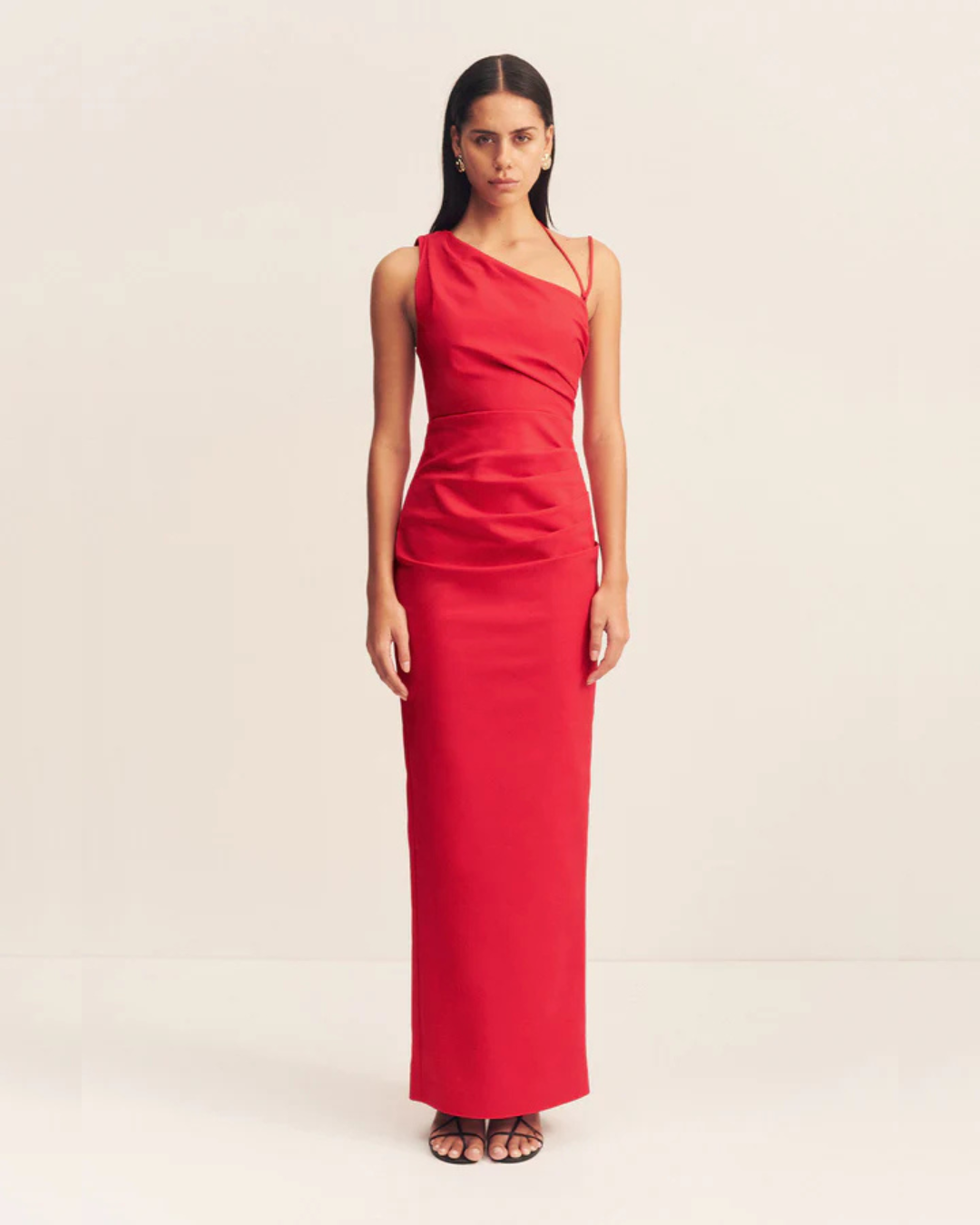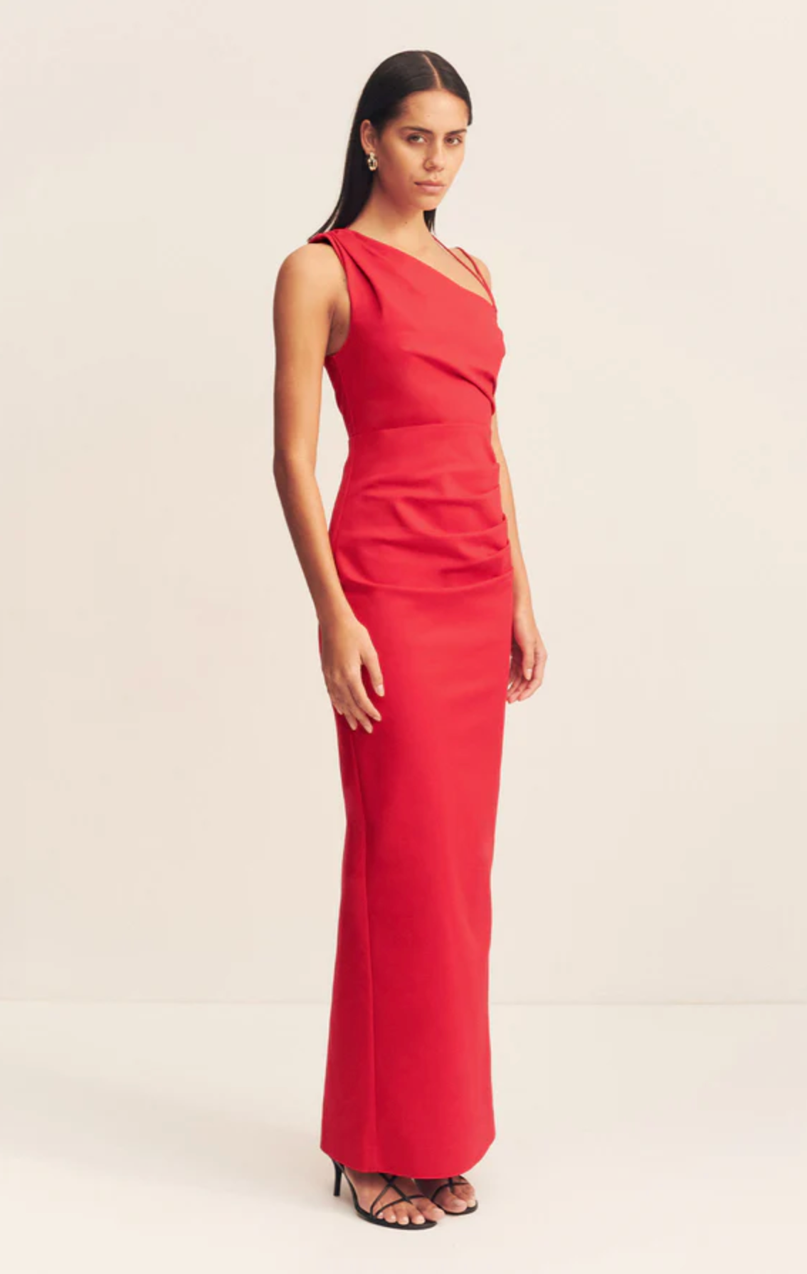 Shona Joy - Lani Asymmetrical Gathered Maxi Dress in Chilli