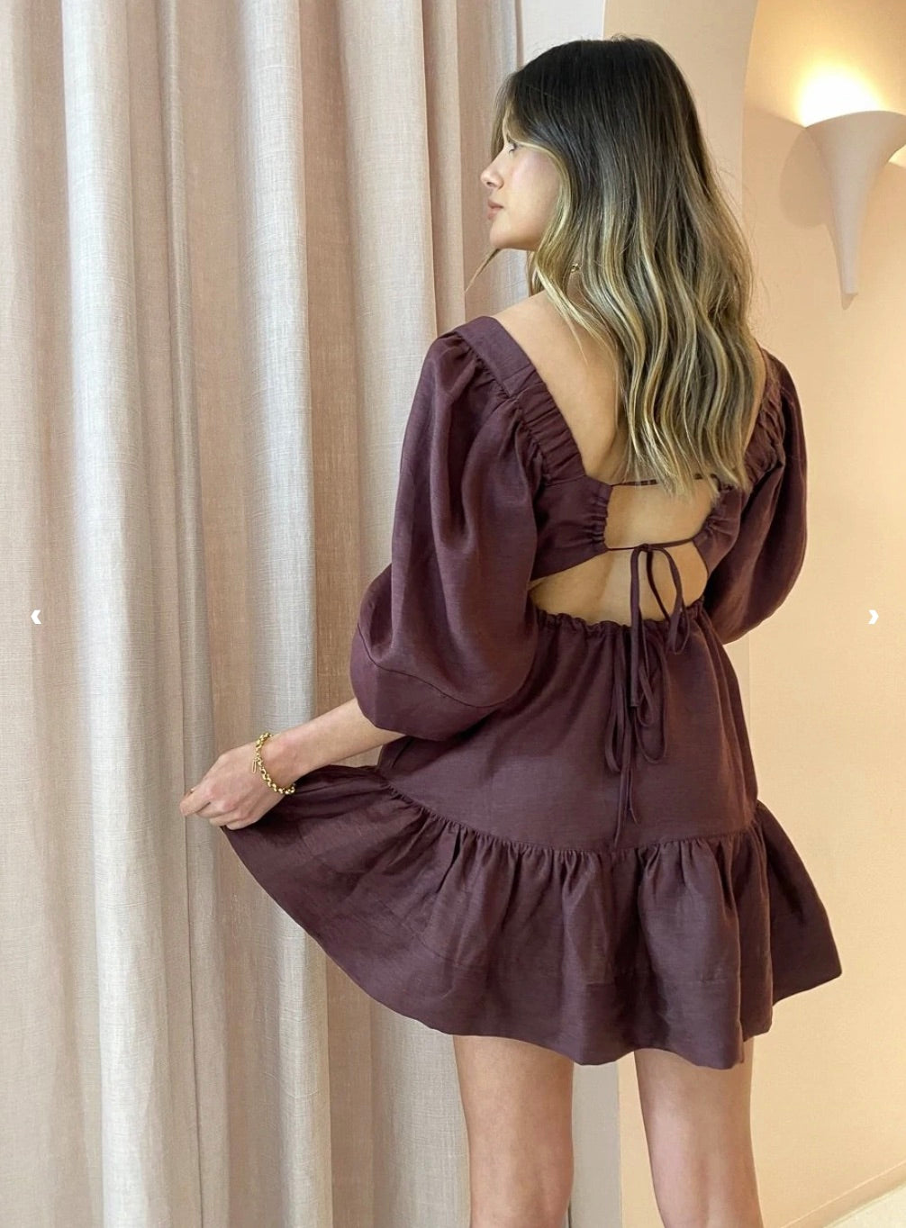 Shona Joy - Marlene Open Back Mini dress in Chocolate