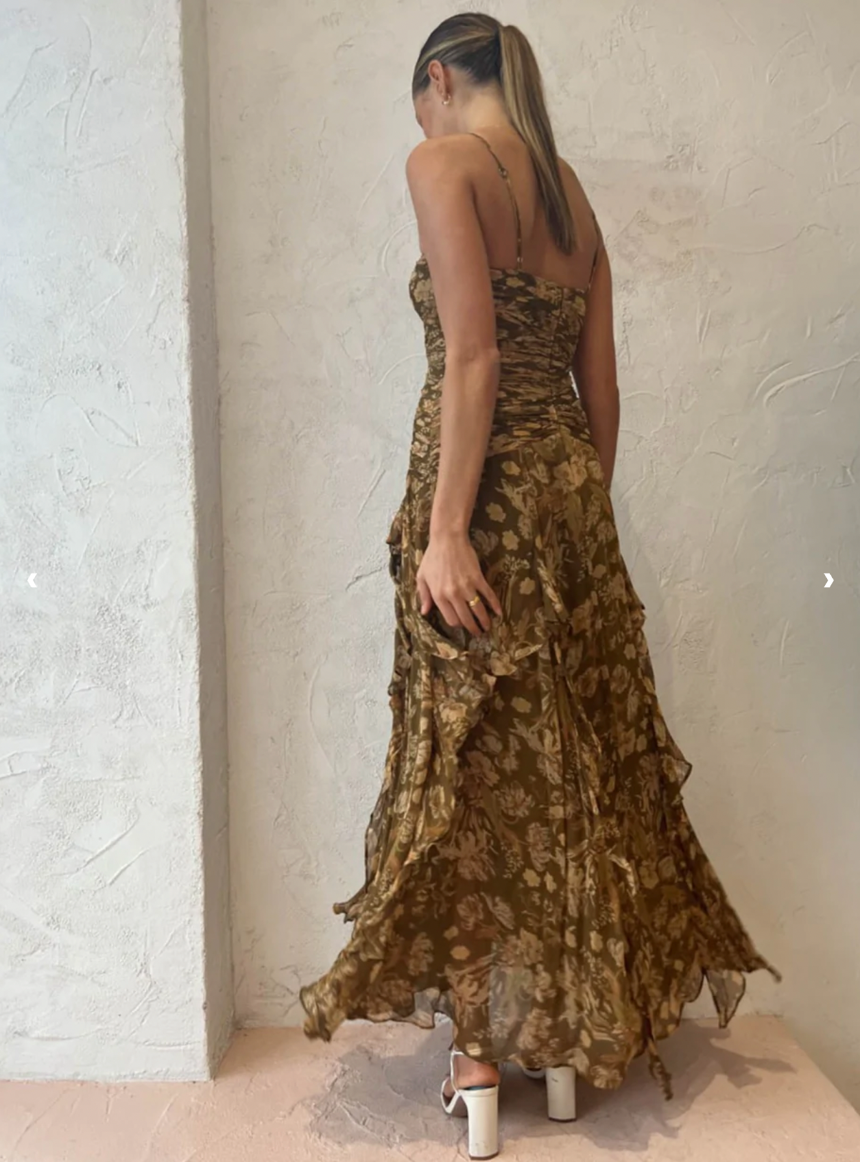 Studio model is 175cm and wearing size 8 - dress is suitable for any height from 5'4 and up.