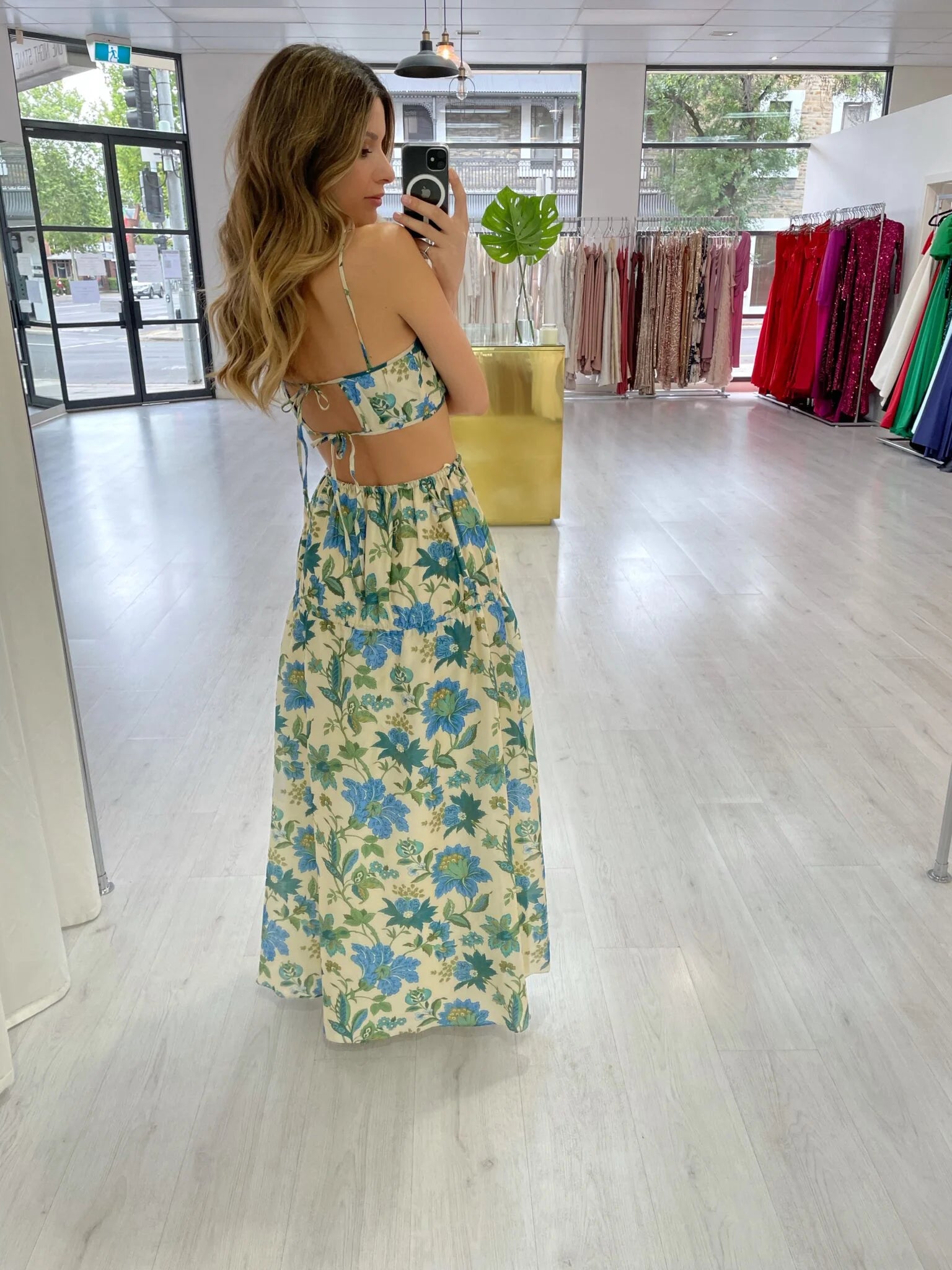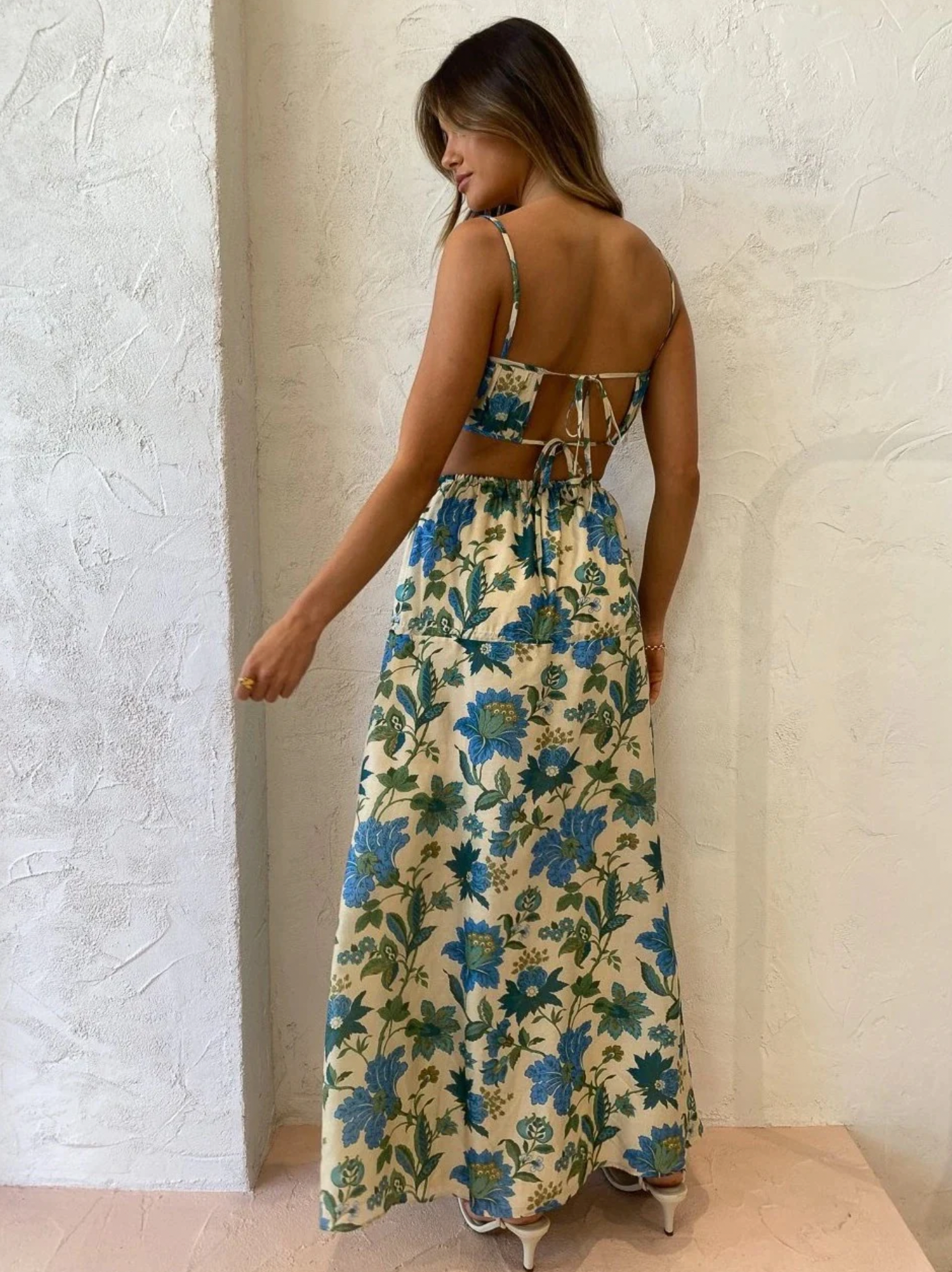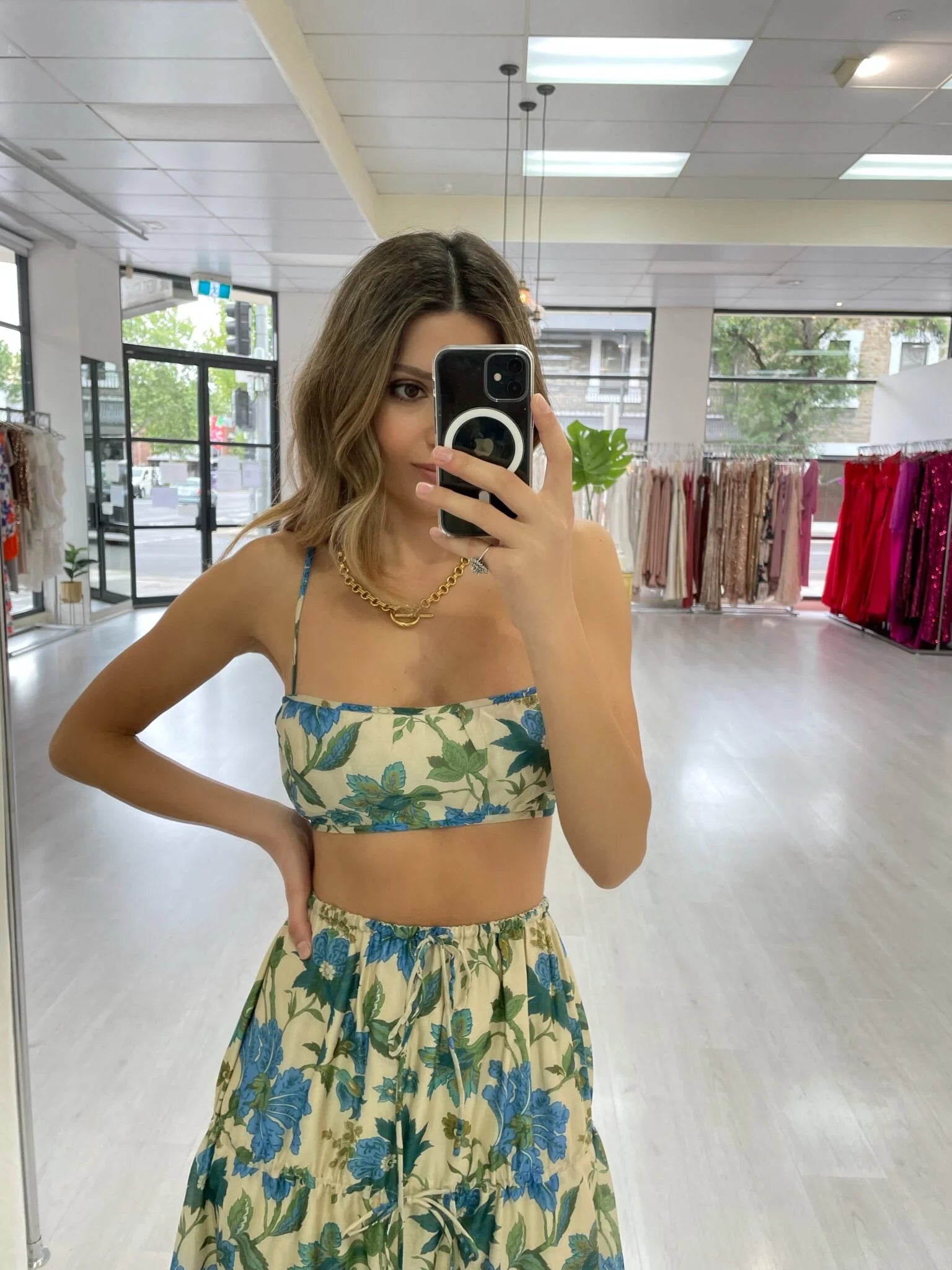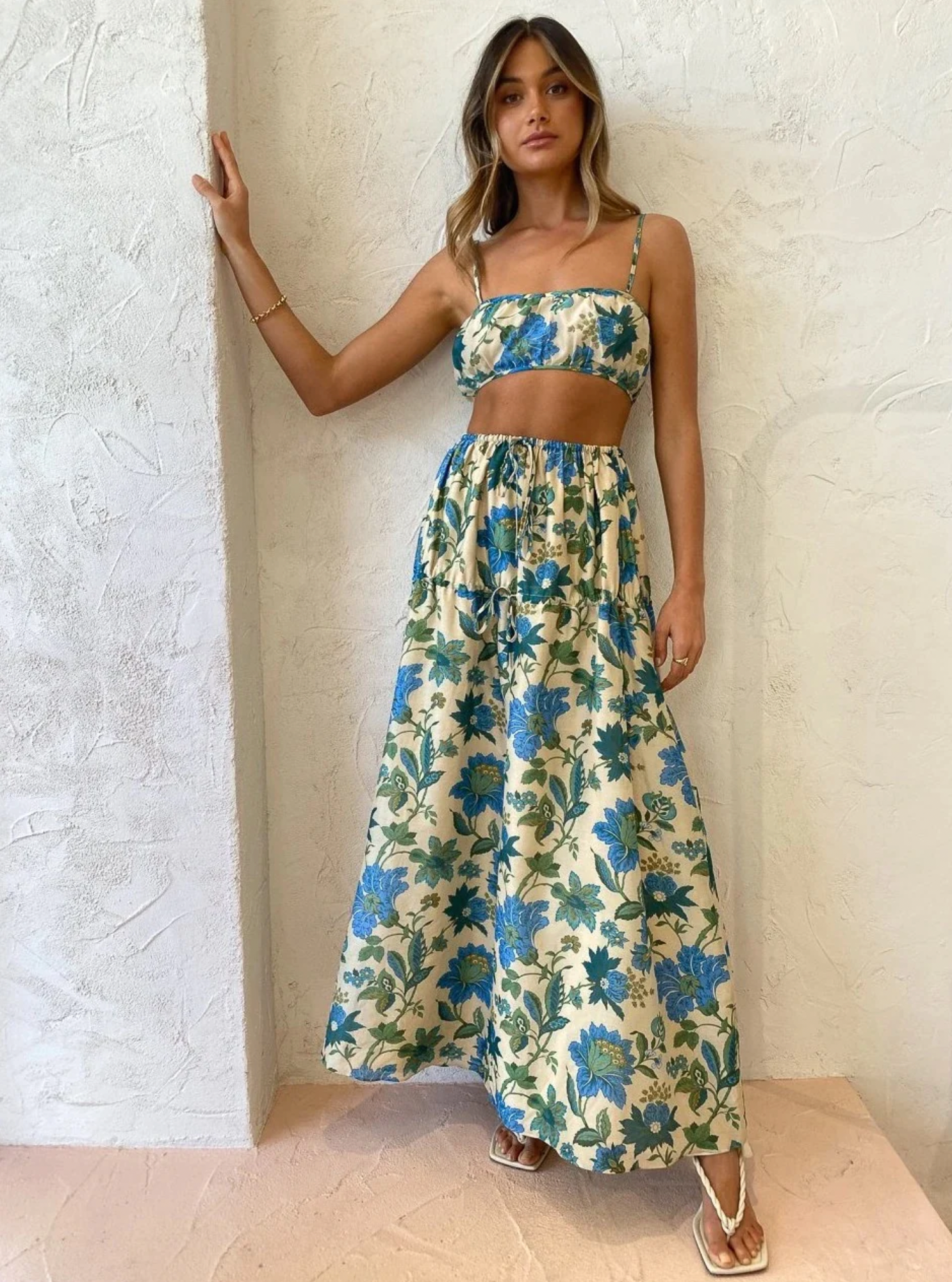 ◦ Skirt comes with elastic waist band and tie to adjust to your desired fit, as well as the crop top coming completely adjustable with ties.