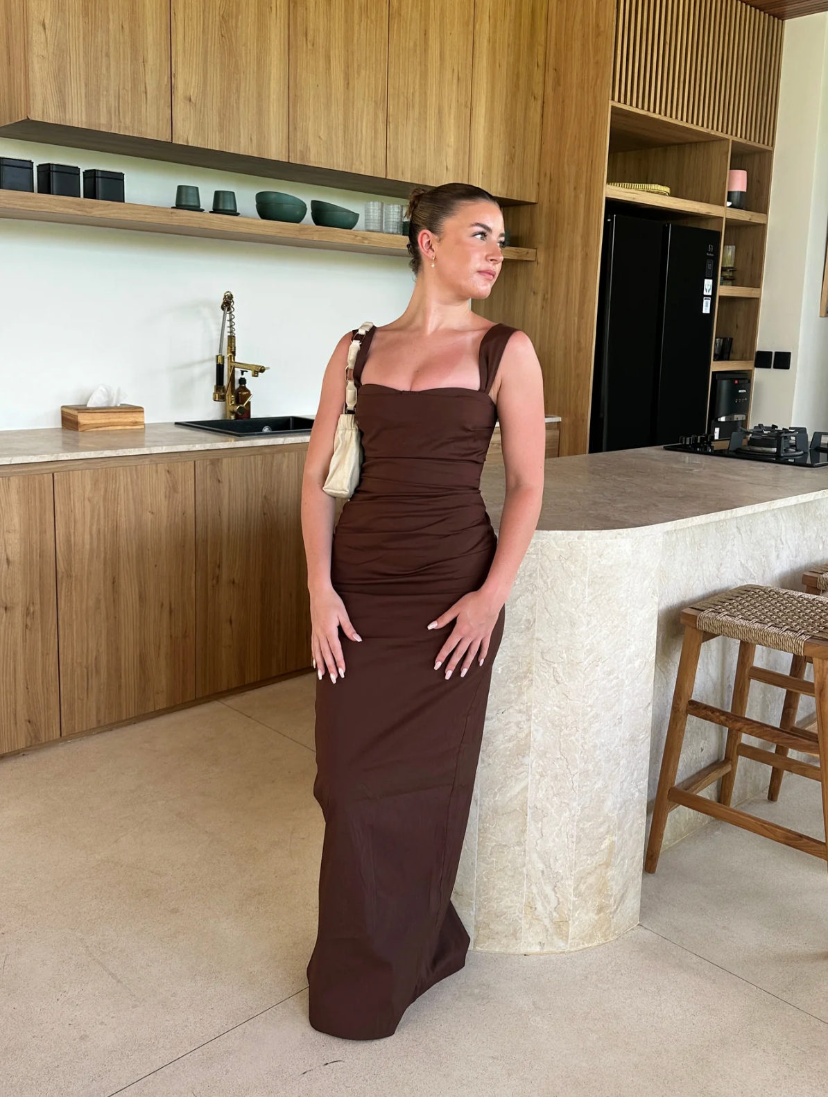 Sir The Label - Dahlia Balconette Gown in Chocolate Brown