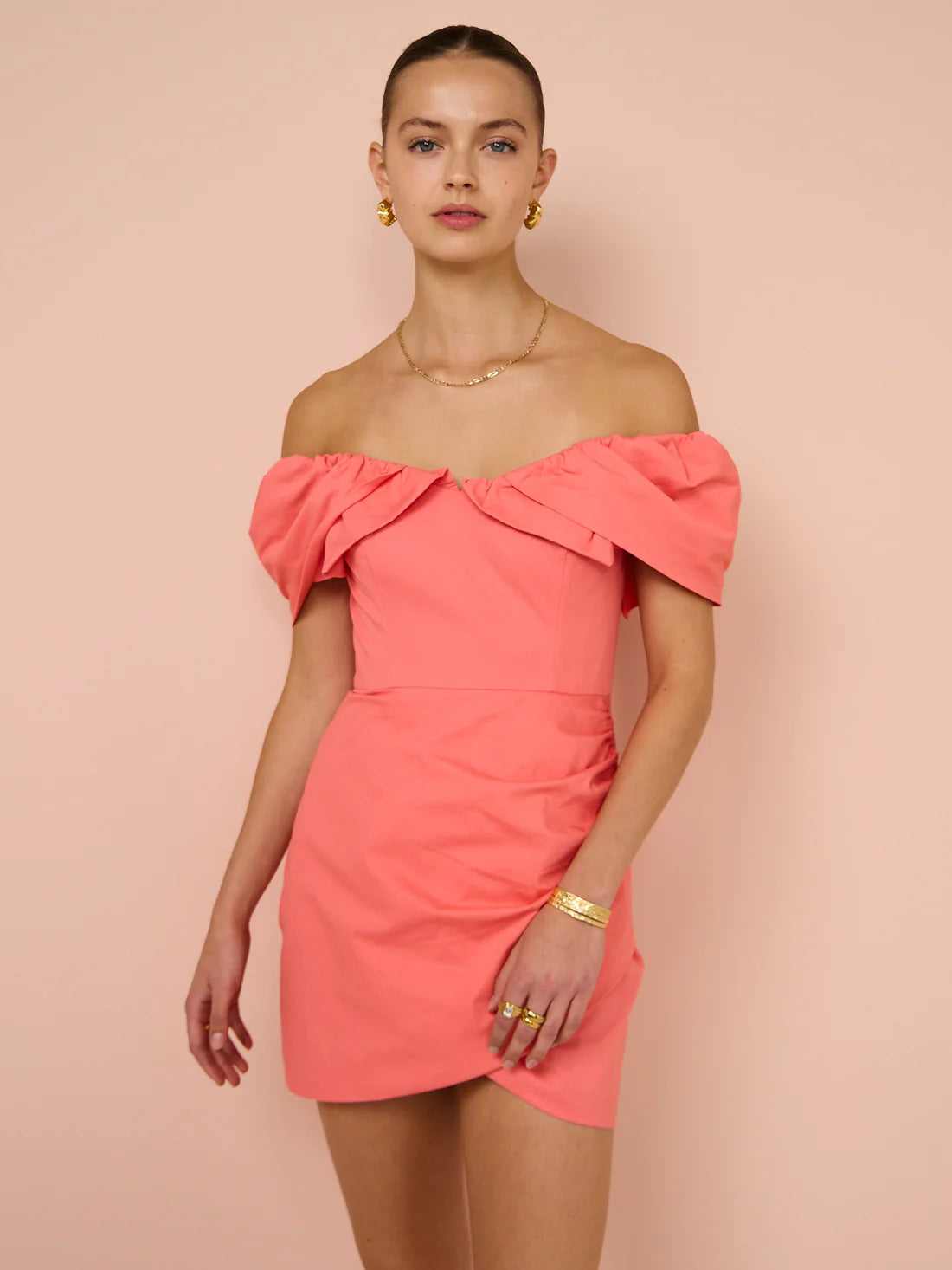 Sofia The Label - Hailey Off Shoulder Mini Dress In Watermelon