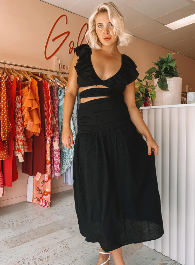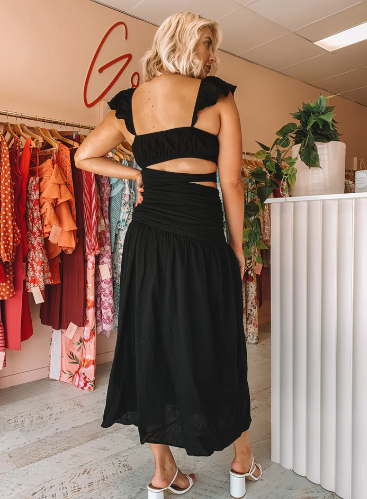 Suboo - Alva Rouched Cut Out Maxi in Black
