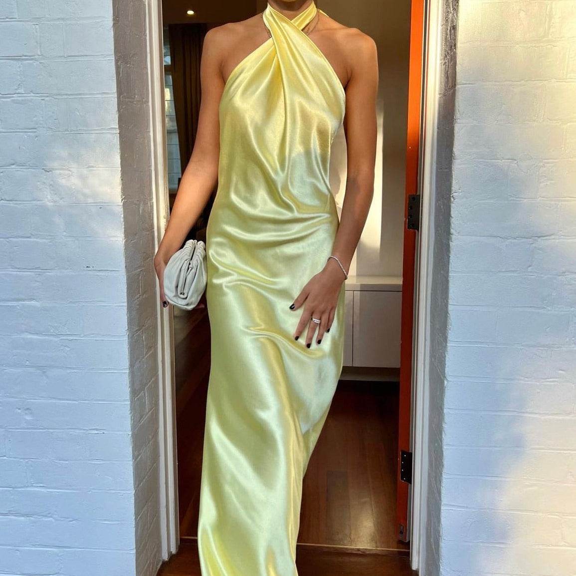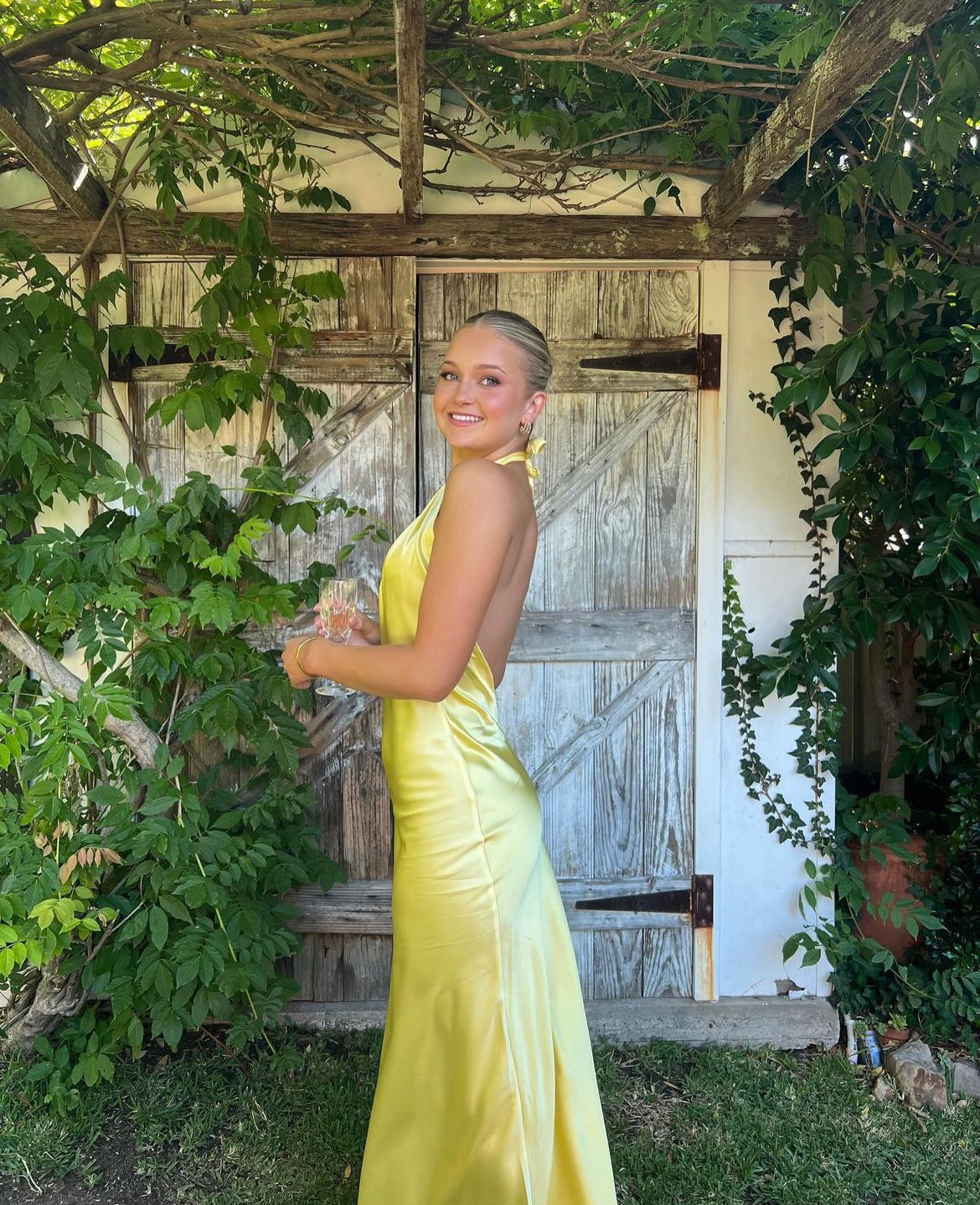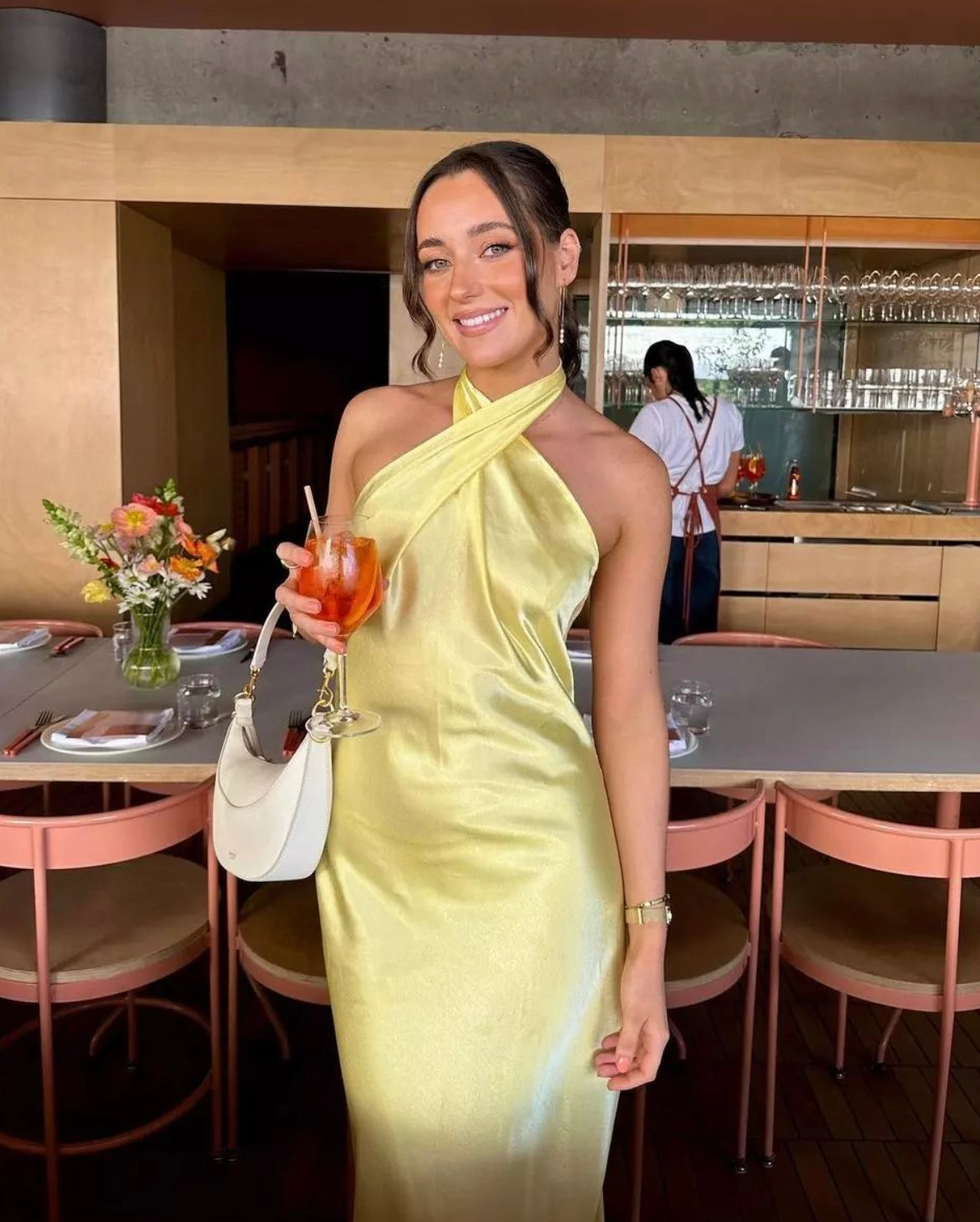Dress comes with a halter neck tie, which can be adjusted to your desired fit. Adjusting the halter neck also tightens the bust of the top and the back of he dress, allowing multiple sizes to fit.